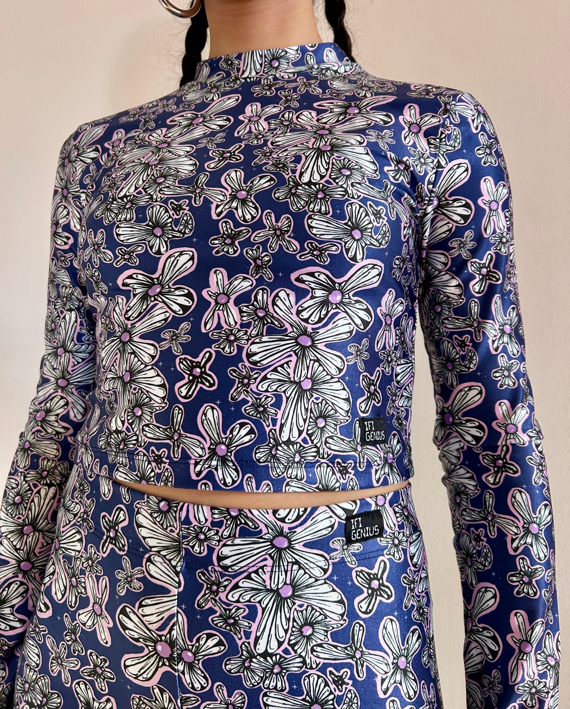 Cosmic flowers meet street energy this crop top turns every sidewalk into a runway. Dreamy prints, fearless attitude, and effortless unisex style for those who wear their imagination loud